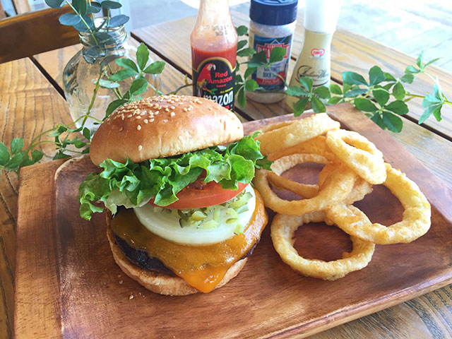 大人もくつろげるバーガーカフェ。ゆっくり落ち着いて過ごせる「空間」。安心して食べられたり、ヘルシーだったり、素材から生産者の気持ちが伝わってきたり、お腹だけでなく心も満たされる「おいしさ」。日常を楽しむちょっとだけ贅沢な空間として、ランチでも、ティータイムでも、ぜひご利用ください。